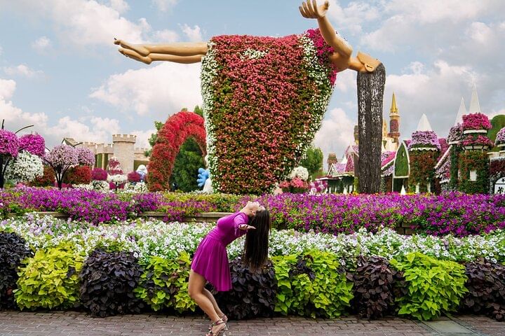 Travel to the botanical paradise of Dubai Miracle Garden, spanning 72000 square meters of stunningly laid out landscape. Opened in 2013 as an effort to create a lush oasis in the middle of the desert, this garden has since then become one of Dubai’s most visited attractions, drawing millions of visitors per year