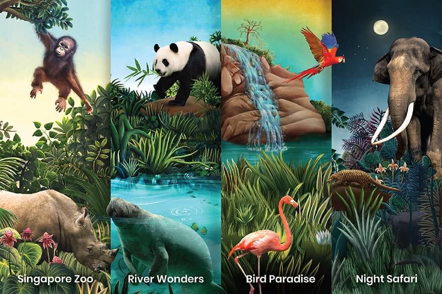 • Singapore Zoo, River Wonders, Night Safari, Bird Paradise